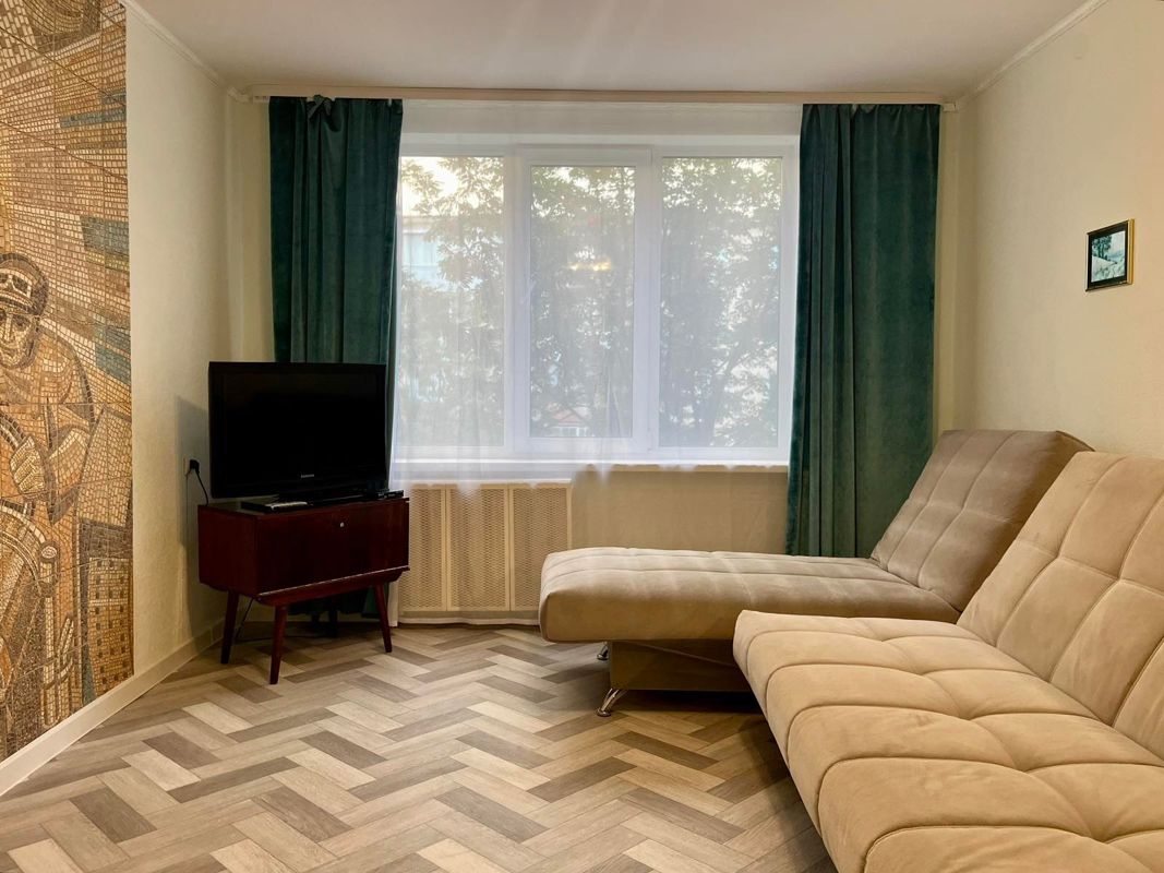 Двухкомнатная квартира комфорт-класса рядом со Строительным техникумом. Свежий ремонт с элементами стиля СССР удачно сочетает атмосферу той эпохи и современное удобство проживания. В квартире имеются две раздельные односпальные кровати и большой комфортный диван в гостиной. Раздельный санузел и комнаты обеспечивают дополнительное удобство. Кухня полностью оборудована для вашего комфорта.