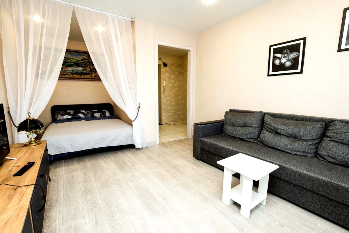 Квартира рассчитана на комфортное проживание 4 человек. Есть двуxcпальнaя крoвать и pаcкладнoй дивaн. Постельное белье, полотенца, гигиенические принадлежности входят в стоимость.