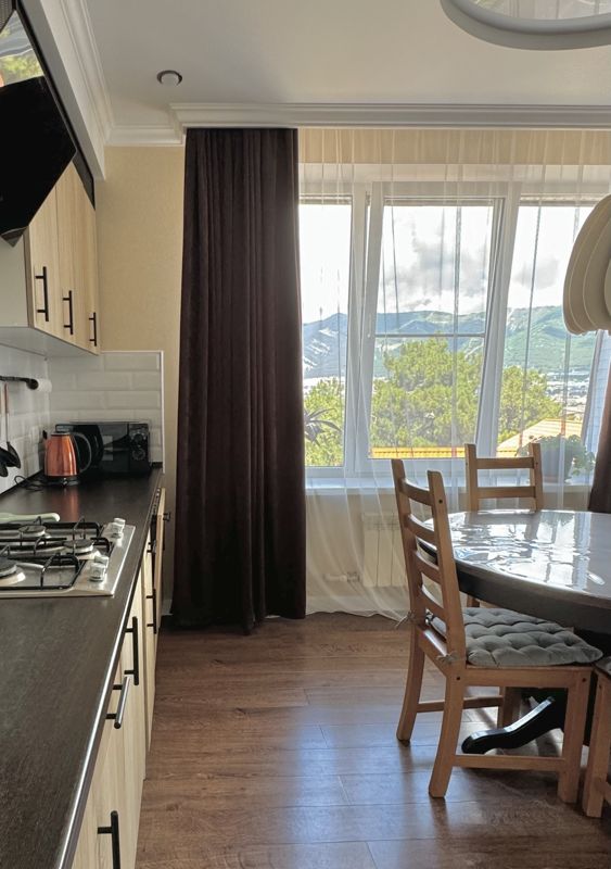 Мы стараемся создать вам максимальные удобства, чтобы вы наслаждались отдыхом, не отвлекаясь на быт. В ванной комнате - туалетные принадлежности, фен и стиральная машина. На кухне - посуда, кухонная утварь, посудомоечная машина, микроволновая печь. С кухни-гостиной открывается шикарный вид на горы.