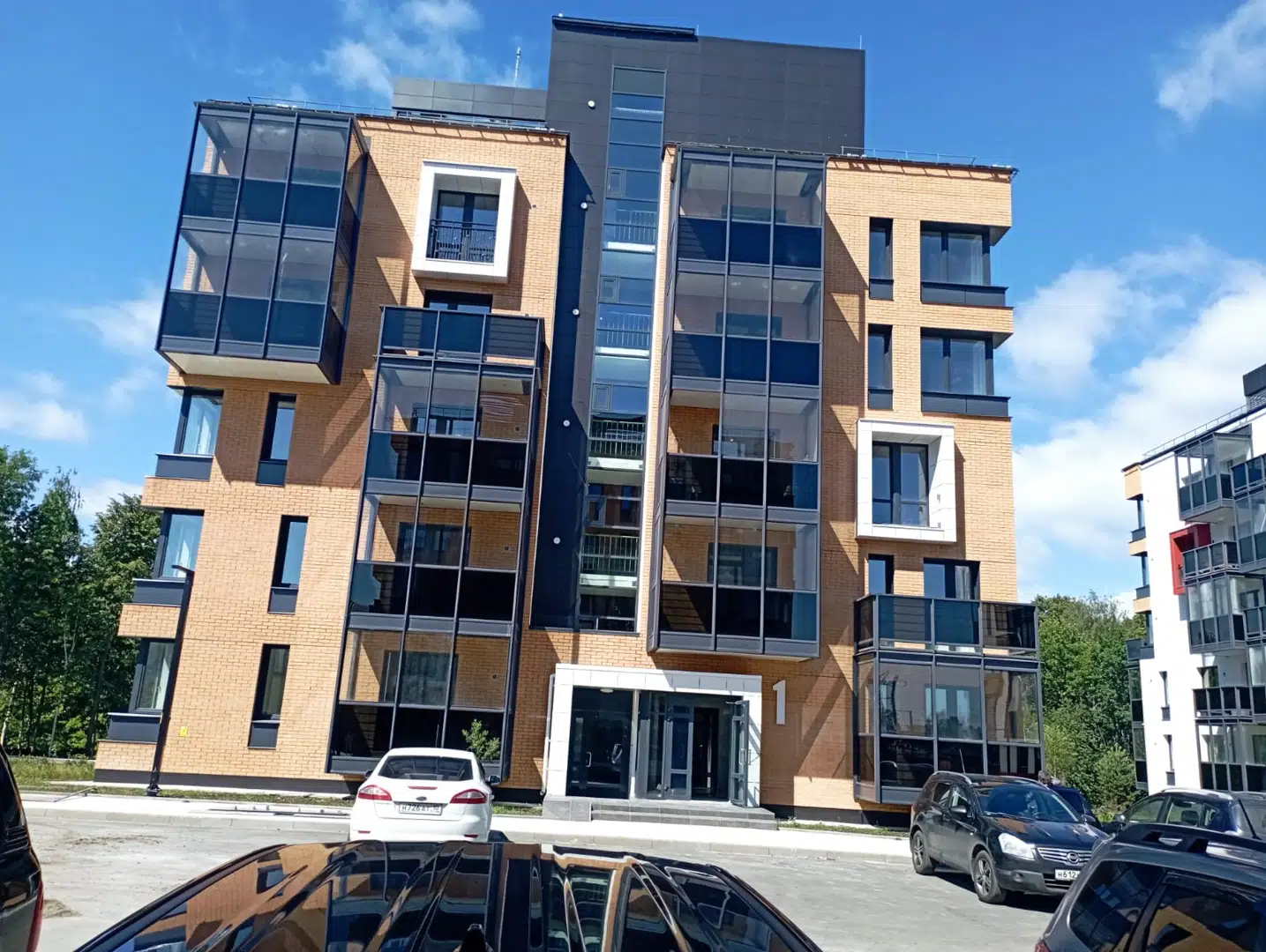 Территория комплекса огорожена шлагбаумом, поэтому парковочные места всегда есть.