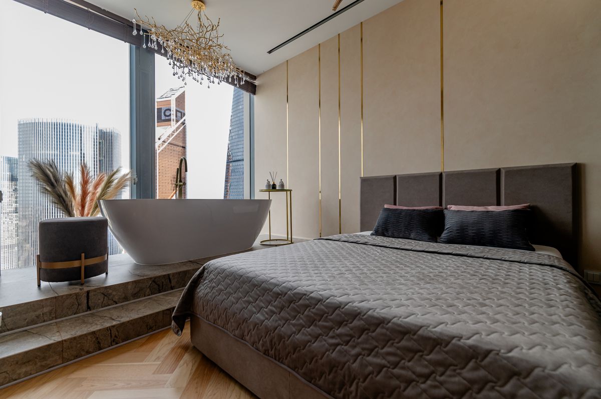 Элитные апартаменты на 43 этаже в Neva Towers с ванной у окна, хаммамом и сауной внутри апартаментов Апартаменты оборудованы всеми последними достижениями в области бытового комфорта.