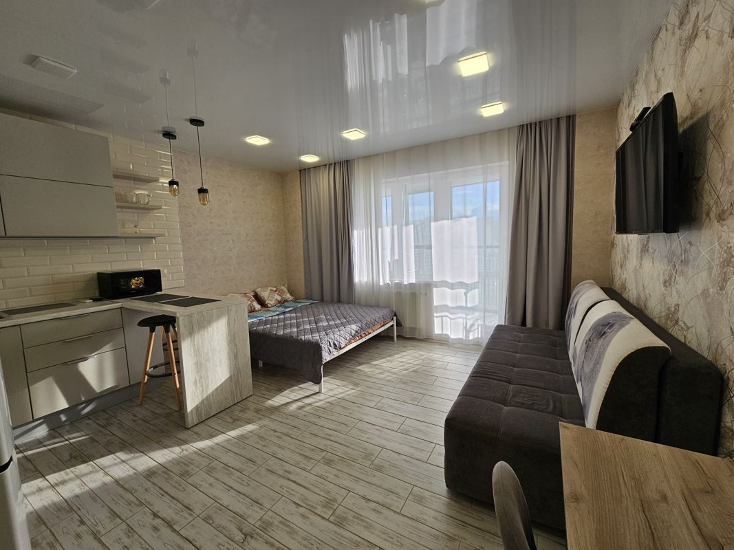 Сдается уютная студия для 4х гостей с большой панорамной лоджией с прекрасным видом из окна, в активно развивающемся районе Ново-Патрушева!