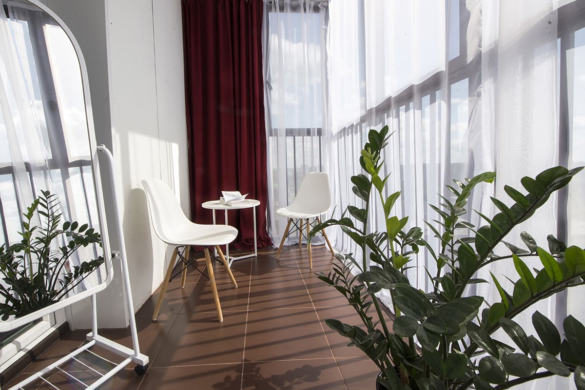 Квартира уютная, теплая, с панорамными окнами, балконом. В комнате большая двуспальная кровать (160х200). Окна с видом на город.