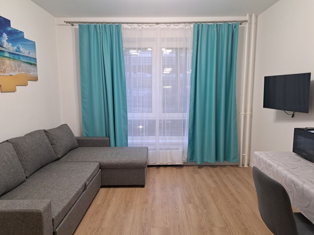Современный ремонт и продуманный дизайн создают в этой студии комфортную атмосферу. Здесь есть всё для того, чтобы отдых был удобным: СмартТВ, кухонная зона и кондиционер