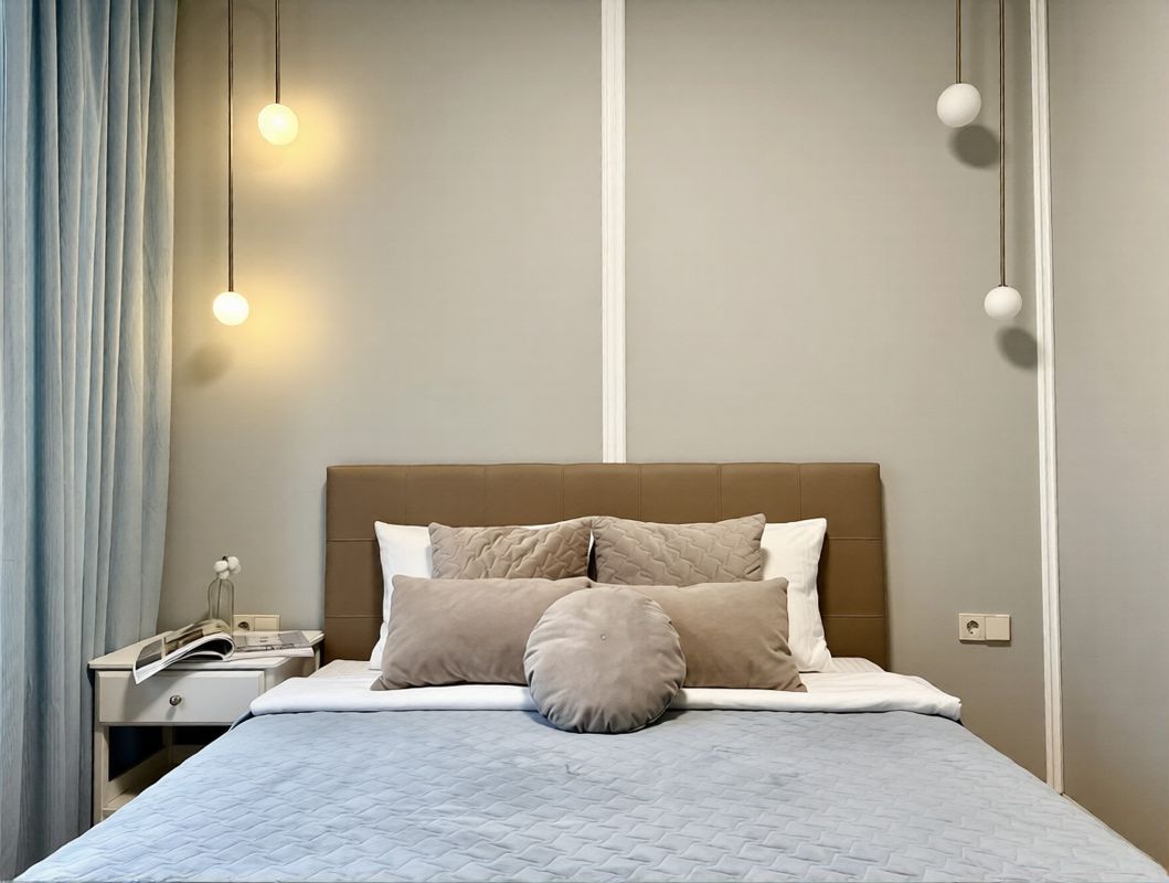 Продуманная система сна: кровать 160*200 с премиальным ортопедическим матрасом, дорогое постельное белье страйп-сатин