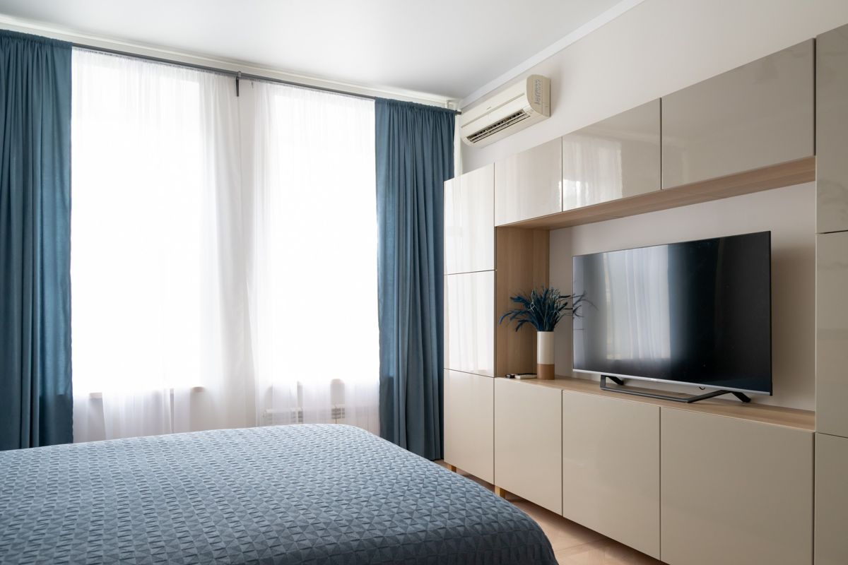 В одной из спален есть возможность раздвинуть кровати для гостей с детьми, из одной 2х-спальной шириной 160см сделать две односпальные 80см.