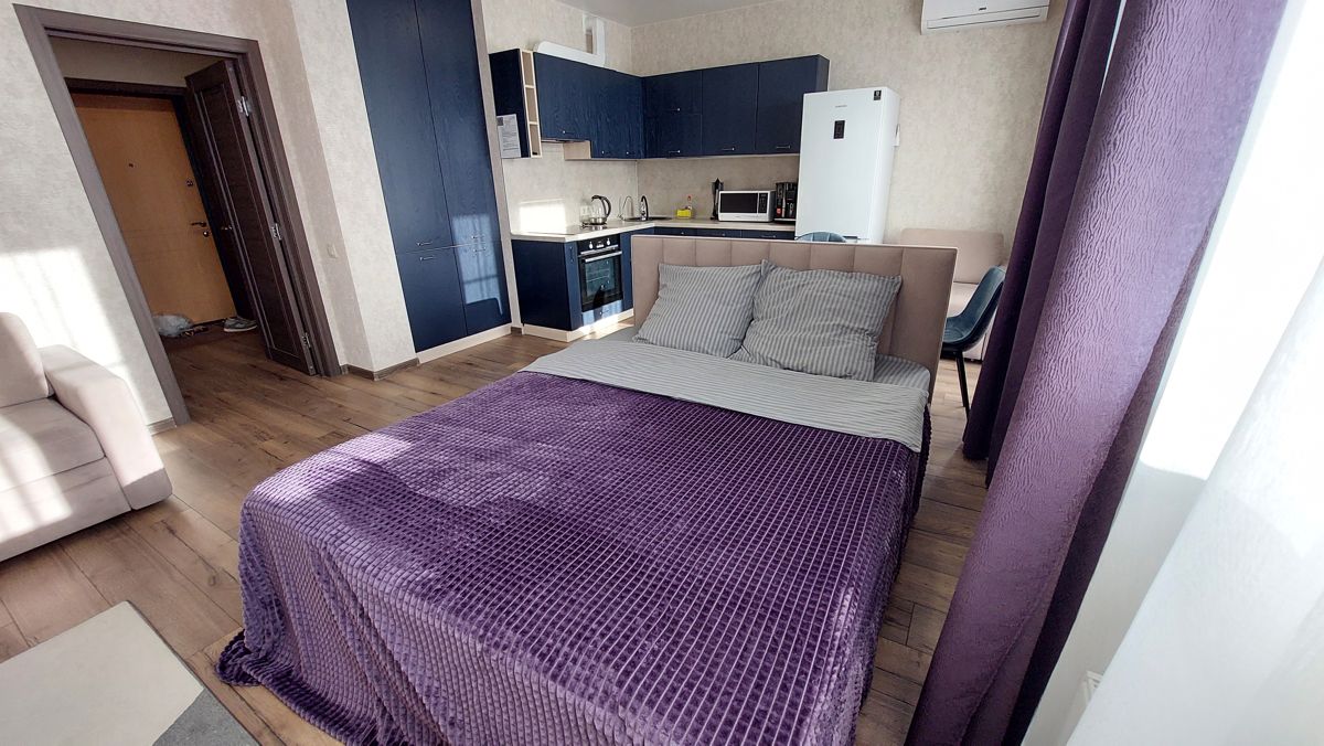 Наша видовая квартира-студия укомплектована всем необходимым для комфортного проживания как на отдыхе, так и в командировке. На кухне есть: свч, чайник,варочная панель,кофемашина, кастрюля, сковорода и другая кухонная утварь. От летнего зноя вас спасёт кондиционер. В ванной комнате есть фен, гель для душа, шампунь, одноразовые зубные щетки, полотенце. Для вашего сна организована кровать с ортопедическим матрасом 160×200 и двухспальный диван-кровать с топпером 140×200 с чистым постельным бельем. Совсем забыли, данные апартаменты дадут вам насладится видом на весь город, встретить закат за бокалом вина. Во дворе дома есть магазин, аптека, пункты выдачи маркетплейсов. Если вы отправились на отдых или в командировку на лично транспорте, его вы сможете оставить как во дворе дома, так и на платной парковке в 1 минуте от дома. А если вы выбрали общественный транспорт, то ваша остановка на автобусе будет Театр Кукол, от Ж/Д вокзала в 10 минутах. До центра города 10 минут.