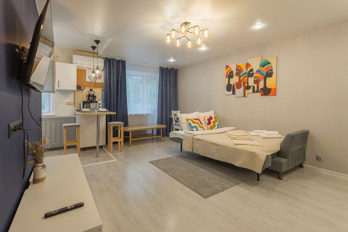 Светлая, уютная студия в новом доме. Абсолютная чистота, стильный интерьер и всё необходимое для комфортного отдыха. Вместимость до 4 гостей (1 двуспальная кровать + раскладной диван). Бесконтактное круглосуточное заселение по паспорту и договору 🔑📲