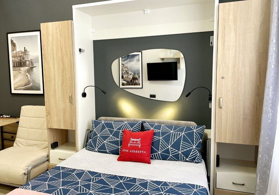 Уютные апартаменты "Дом Альберта" (студия с мини-кухней) и балконом в жк "Прохладная Долина". В наших апартаментах есть всё необходимое для комфортной жизни. В апартаментах двуспальная кровать (160х200) и кресло-кровать (80х180). Для вашего удобства бесконтактное заселение по коду.