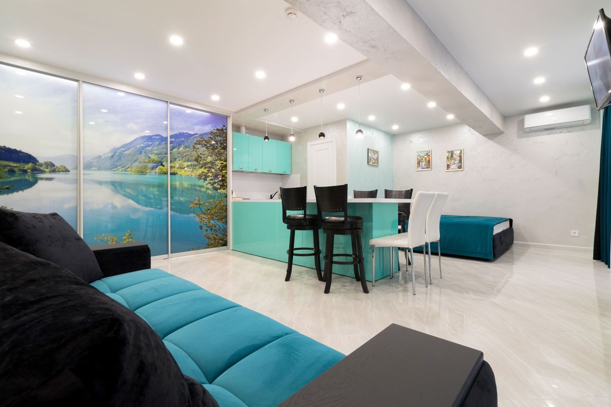 Апартаменты оборудована системой кондиционирования и отопления, плазменным телевизором, беспроводным Wi-Fi.