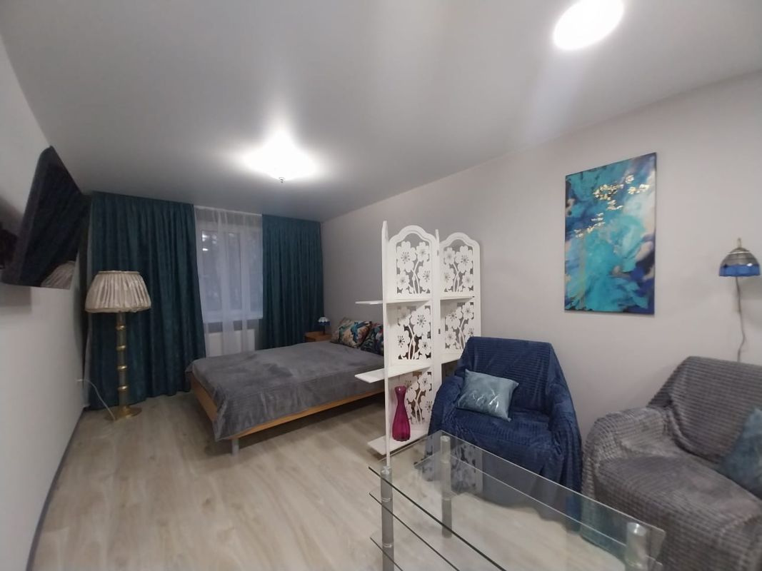 Стильная однокомнатная квартира расположена в Невском районе Санкт-Петербурга.