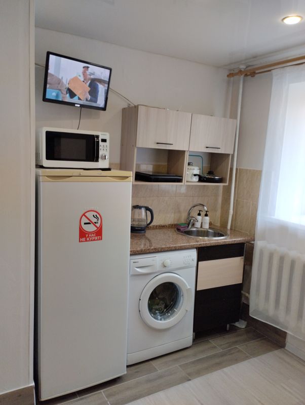 ⭐ В студии есть кухонная зона и совмещенный санузел.