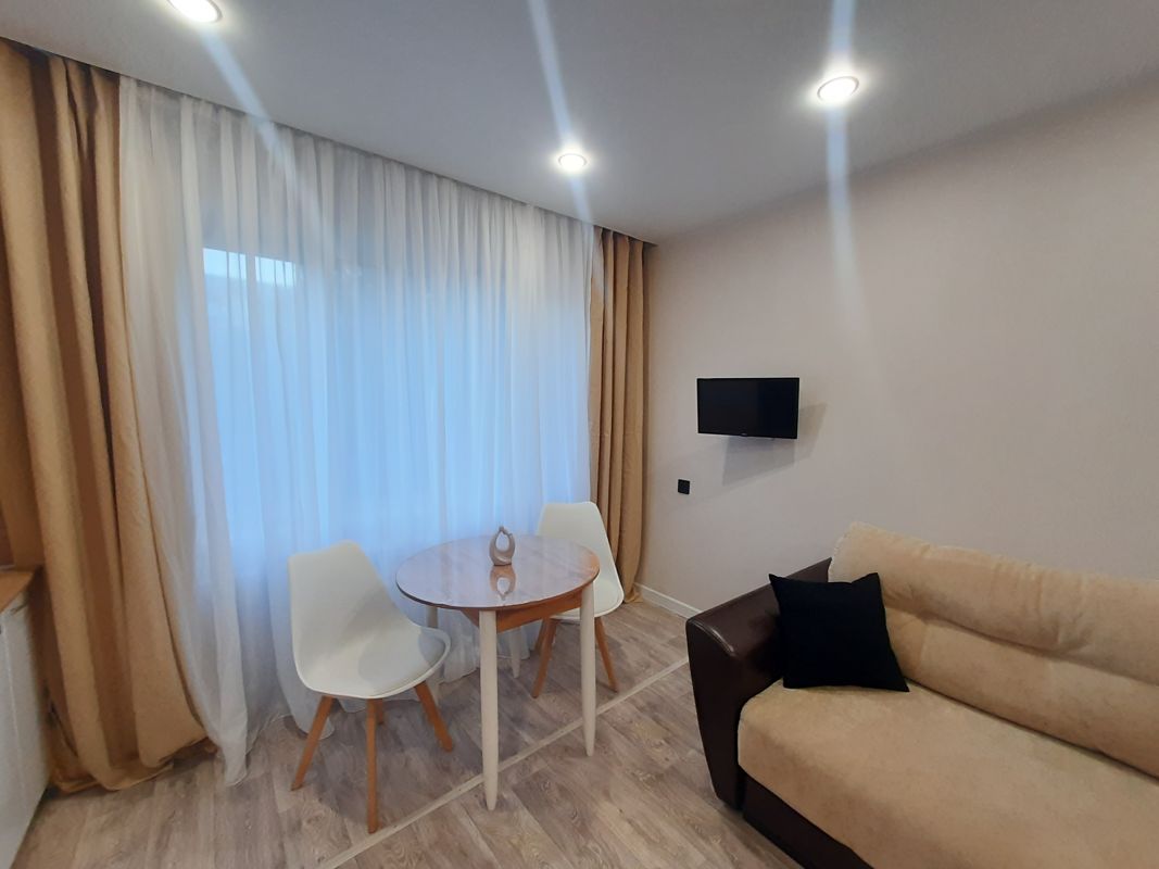 Двухспальный диван в гостиной-столовой и односпальный диванчик в спальне позволяет разместить до 3 человек. В квартире тепло зимой и прохладно летом. Окна выходят во двор