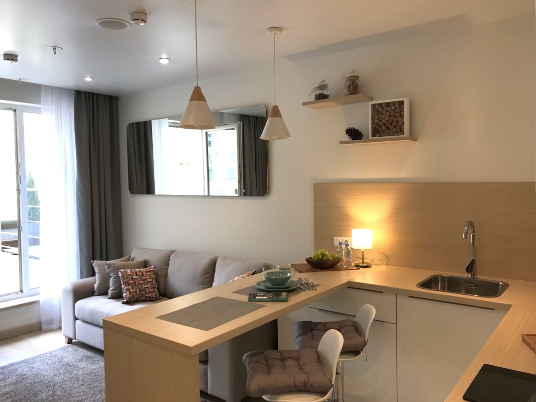 В апартаментах есть терраса и отдельная спальня. Апартаменты укомплектованы бытовой техникой (в том числе кондиционером с функцией обогрева), есть двуспальная кровать с ортопедическим матрасом и постельным бельём. В апартаментах есть кухня/гостиная с обеденной зоной, посудой, столовыми приборами, чаем, сахаром, маслом и специями.
