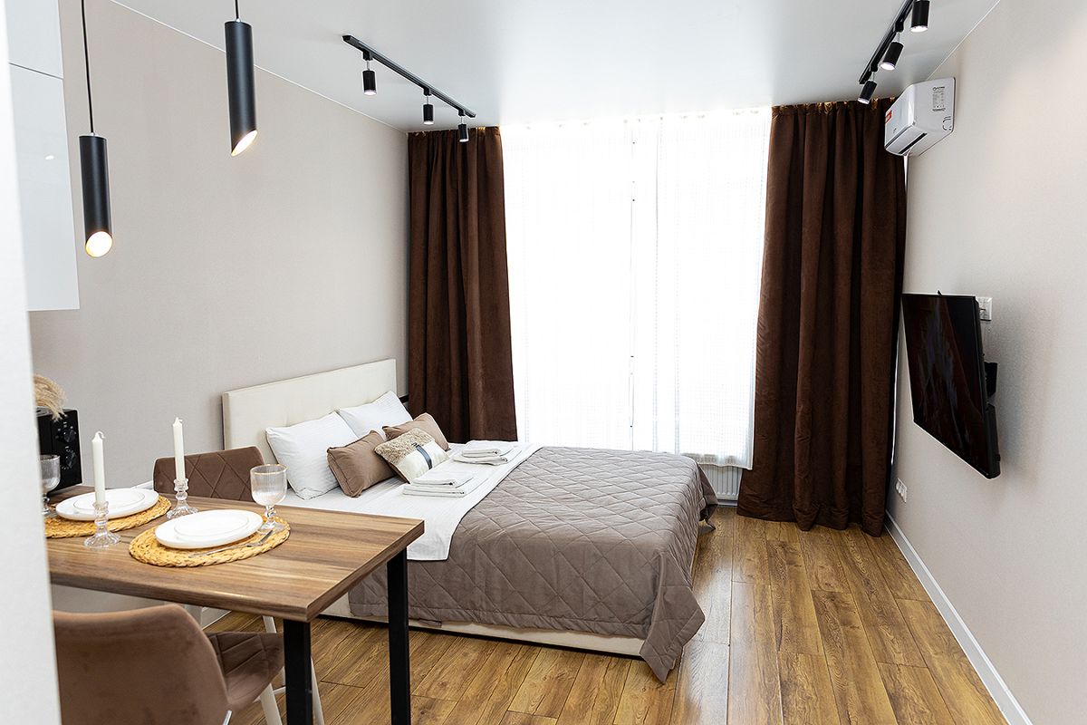 Твоя лучшая студия с панорамными окнами в Новом ЖК рядом с Кадетским корпусом. Удобная двуспальная кровать. Идеально для отдыха, свидания и командировки. Wi-Fi. Высокий уровень комфорта. Отчётные документы. Бесконтактное круглосуточное заселение. Мгновенное онлайн-бронирование.
