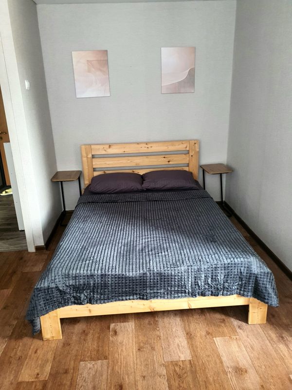 В этой квартире двуспальная кровать из массива сосны с ортопедическим матрасом. В кухне есть необходимая посуда и рабочая техника. Соседи тихие. Вы можете снять квартиру посуточно для проживания до двух человек.