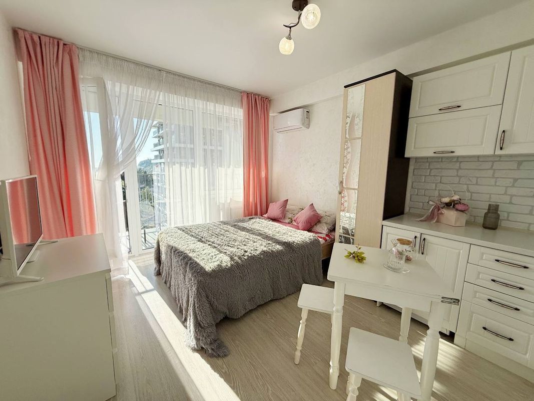 Широкая береговая линия, чистое море, множество кафе, баров, игровых площадок. Море в 1 минуте ходьбы с широким пляжем. Жд вокзал в 2 минуты ходьбы. До центра Сочи 15 минут на Ласточке (станция рядом), на маршрутке 20-25 минут.
