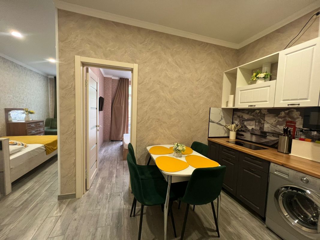 Апартаменты расположились в 5-этажном доме. В комнатах выполнен современный ремонт в светлых оттенках, установлена вся необходимая мебель, есть телевизор, высокоскоростной интернет, кондиционер, стиральная машина. Санузел с душем, полотенцами и туалетными принадлежностями. Кухонная зона оборудована электрической плитой, чайником, микроволновой печью и набором посуды.