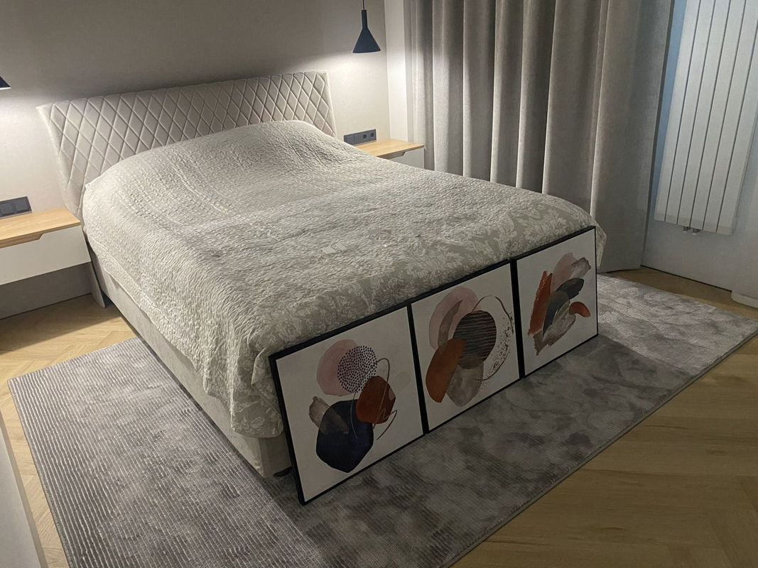 Предлагаем в аренду уютную двух комнатную квартиру 70 м2 с собственной лужайкой 30 м2 метров, одна изолированная спальня и кухня-гостиная, с антресолью со спальным местом. Очень много мест хранения. Парковка на территории комплекса бесплатно.