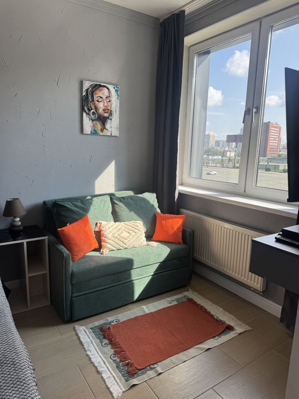 Наша современная стильная студия расположена прямо напротив центрального стадиона — вид из окна подарит ощущение, что вы сидите на трибуне во время матча!