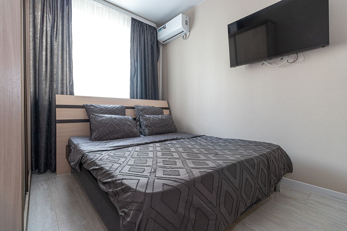 В квартире есть все необходимое для проживания постельное белье, комплект полотенец, посуда, кабельное ТВ и wi-fi.