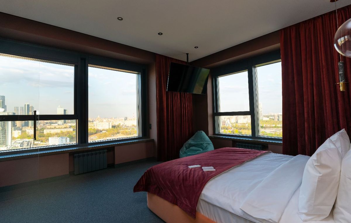 Апартамент №9 премиум-класса — это роскошные двухкомнатные апартаменты на сутки в Москве, расположенные на 25 этаже ЖК «Матч Поинт». Просторный номер площадью 65 кв. м с панорамными окнами на две стороны предлагает захватывающие виды на парк Победы, Поклонную гору и Кутузовский проспект. В апартаментах премиум-класса есть все для комфортного проживания 2-4 гостей: отдельная спальня с большой двуспальной кроватью и гостиная с раскладным диваном. Особой роскошью стала ванная-джакузи у панорамного окна с видом на город. Это идеальный вариант посуточной аренды апартаментов на Кутузовском проспекте для особых случаев и праздников.