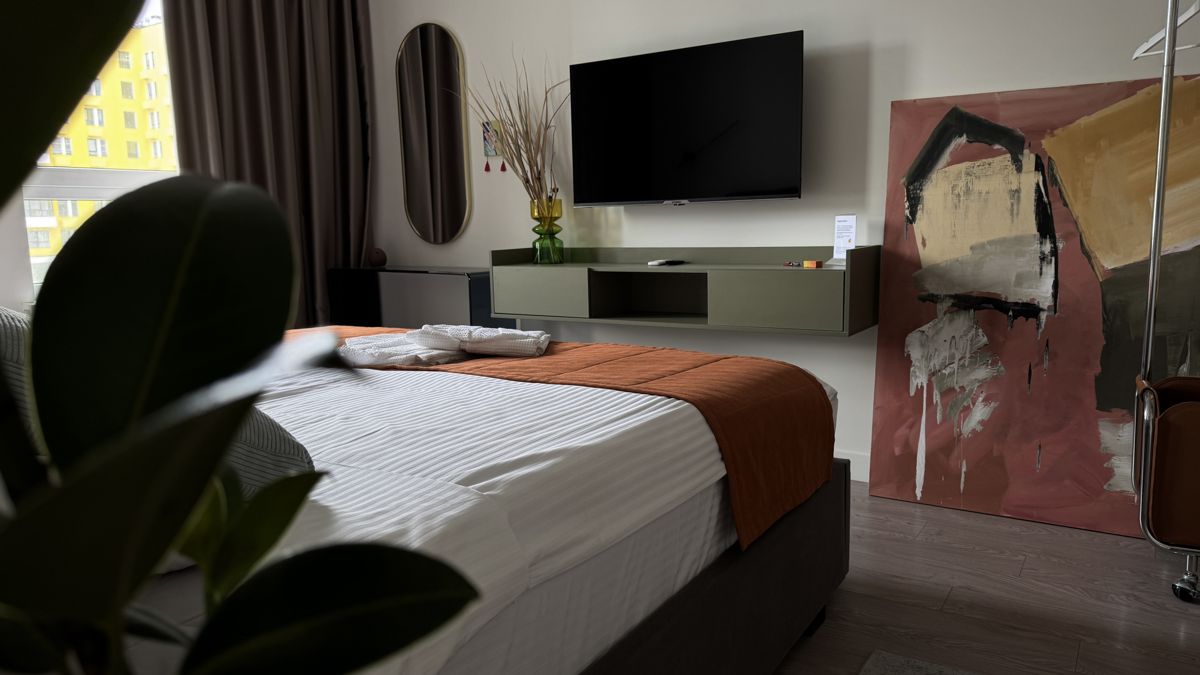 Особенность этих апартаментов — интерьеры с элементами современного искусства. На стенах — оригинальные работы художников из Москвы, Санкт-Петербурга, Ростова-на-Дону и Краснодара. Коллекция постепенно пополняется и обновляется, поэтому каждый заезд может быть немного другим. Это редкое сочетание — уюта жилья и атмосферы арт-пространства, где дизайн и искусство работают на комфорт и вдохновение.