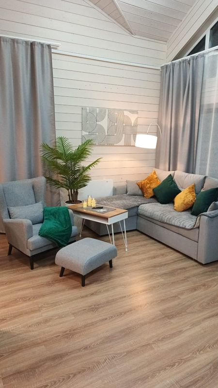 ✔ Просторный 2-комнатный дом (82 м²) с панорамными окнами, террасой и мангальной зоной.