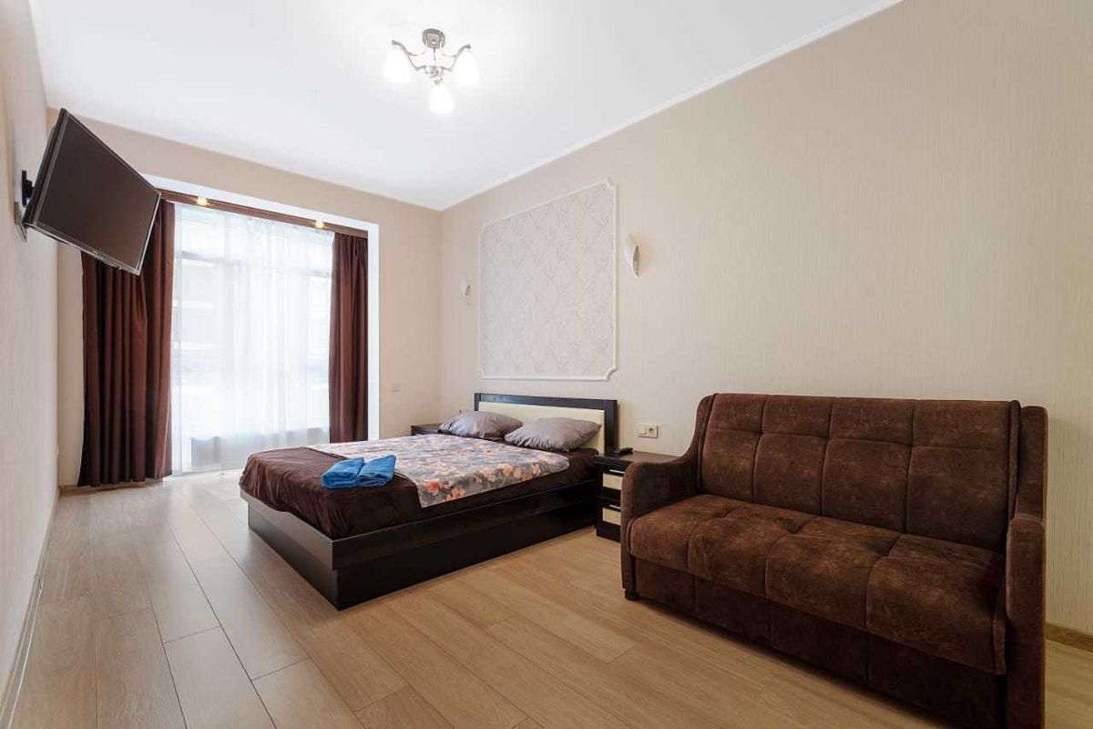 Качественная деревянная кровать, ортопедический матрас, вся техника, Смарт ТВ., кондиционер, индукционная панель. В квартире не курить.