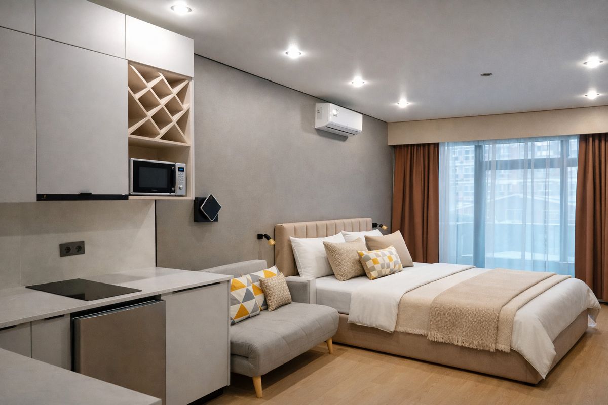 Эта студия создана как маленький бутик-номер — для тех, кто любит эстетику, комфорт и продуманные детали.