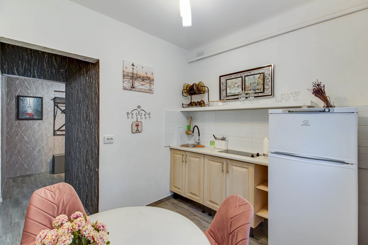 Максимально комфортные условия проживания, в том числе: бесплатный Wi-Fi, встраиваемая кухонная техника, стиральная машина, посуда, утюг, чайник, водонагреватель, гладильная доска, постельное белье, комплект полотенец, душевые принадлежности
