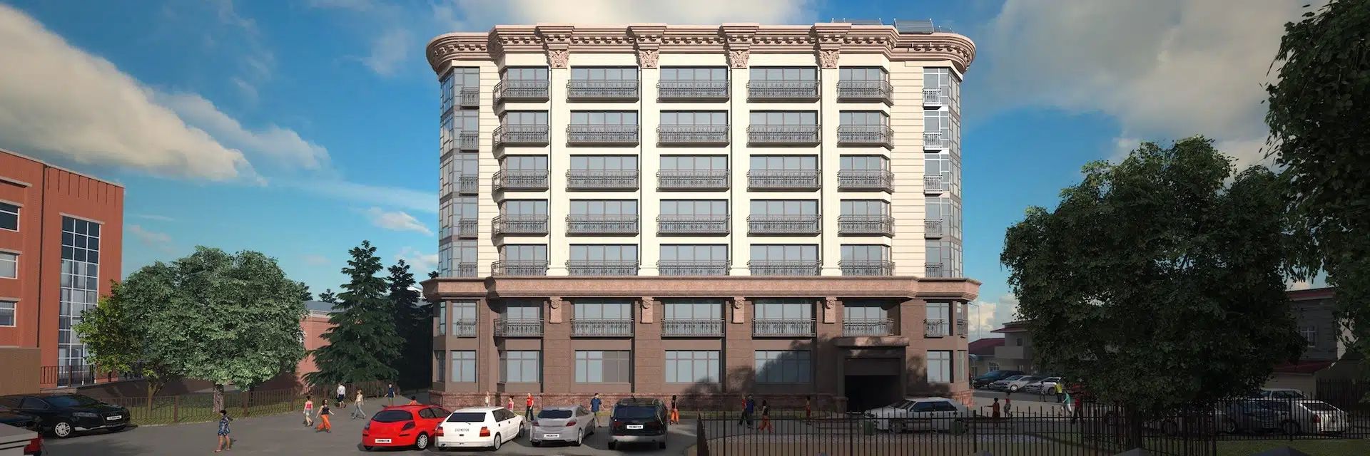 Подземный паркинг позволит не думать о парковке в центре города. Охраняемая территория и консьерж.