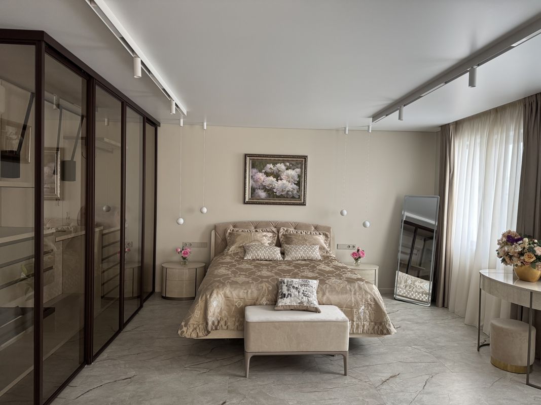 Уютная просторная спальная с кондиционером и стильной гардеробной, большой телевизор со smart-TV
