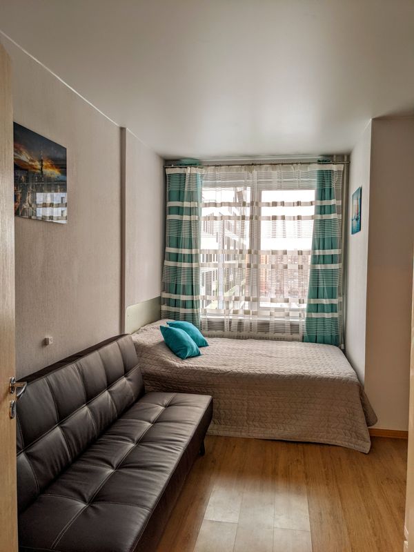 Сдаётся уютная просторная квартира с двумя окнами в новом доме в пешеходной доступности до метро Звёздная (около 15 минут пешком). Для комфортного сна в квартире имеется двуспальная кровать размером 1,4 метра * 2 метра и диван-кровать размером 1,1 метра*1,9 метра. Вы сможете начать свой отдых с первой секунды заселения в квартиру, поскольку всё необходимое для комфортного проживания в ней есть, а этапы уборки перед каждым заселением обязательно включают в себя в том числе:
