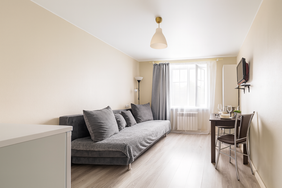 ✨ Комфортная студия с диваном-кроватью, Wi-Fi, кабельным ТВ и бытовой техникой — всё для удобного проживания без лишних забот.