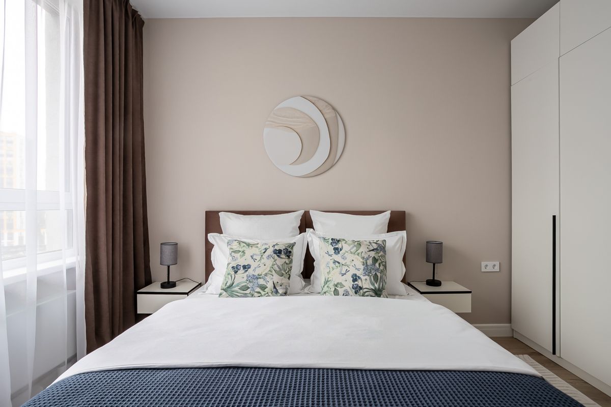 - Просторная двуспальная кровать Askona с ортопедическим матрасом 160*200 с мягким постельным бельем 1-2 гостей.