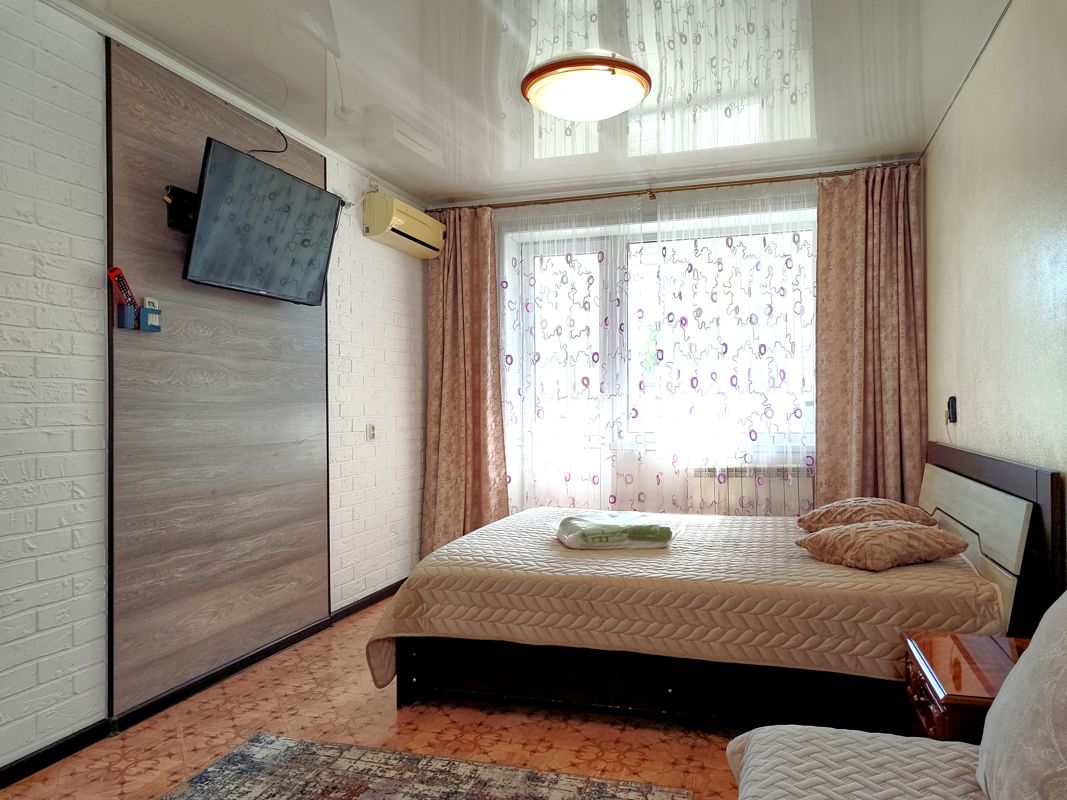 В квартире вас ждет большая двуспальная кровать и удобный раскладной диван-кровать. Всегда свежее белоснежное постельное бельё, мягкие полотенца, кабельное ТВ, Wi-Fi, гладильные принадлежности и кондиционер.