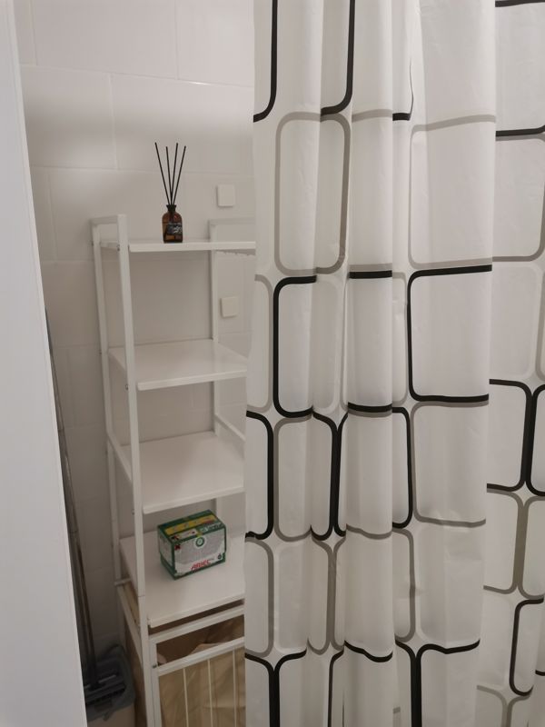 кровать (140*200), комод, шкаф для одежды, варочная панель (духовки нет), микроволновка, чайник электрический, холодильник, телевизор, водонагреватель, стиральная машинка, кондиционер, утюг, гладильная доска, посуда и столовые приборы, посуда для приготовления пищи.