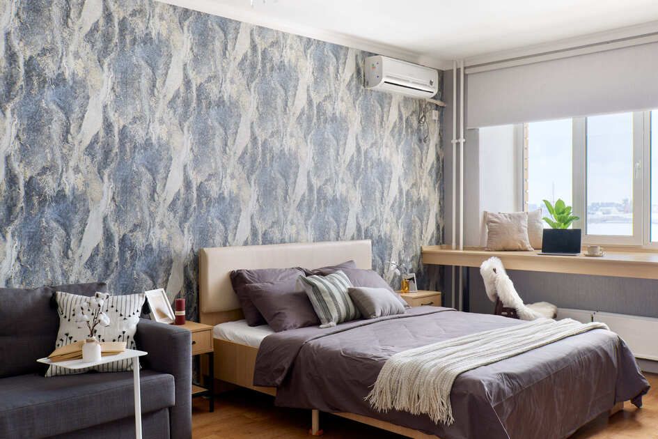 В апартаментах двуспальная кровать и большой раскладной диван.