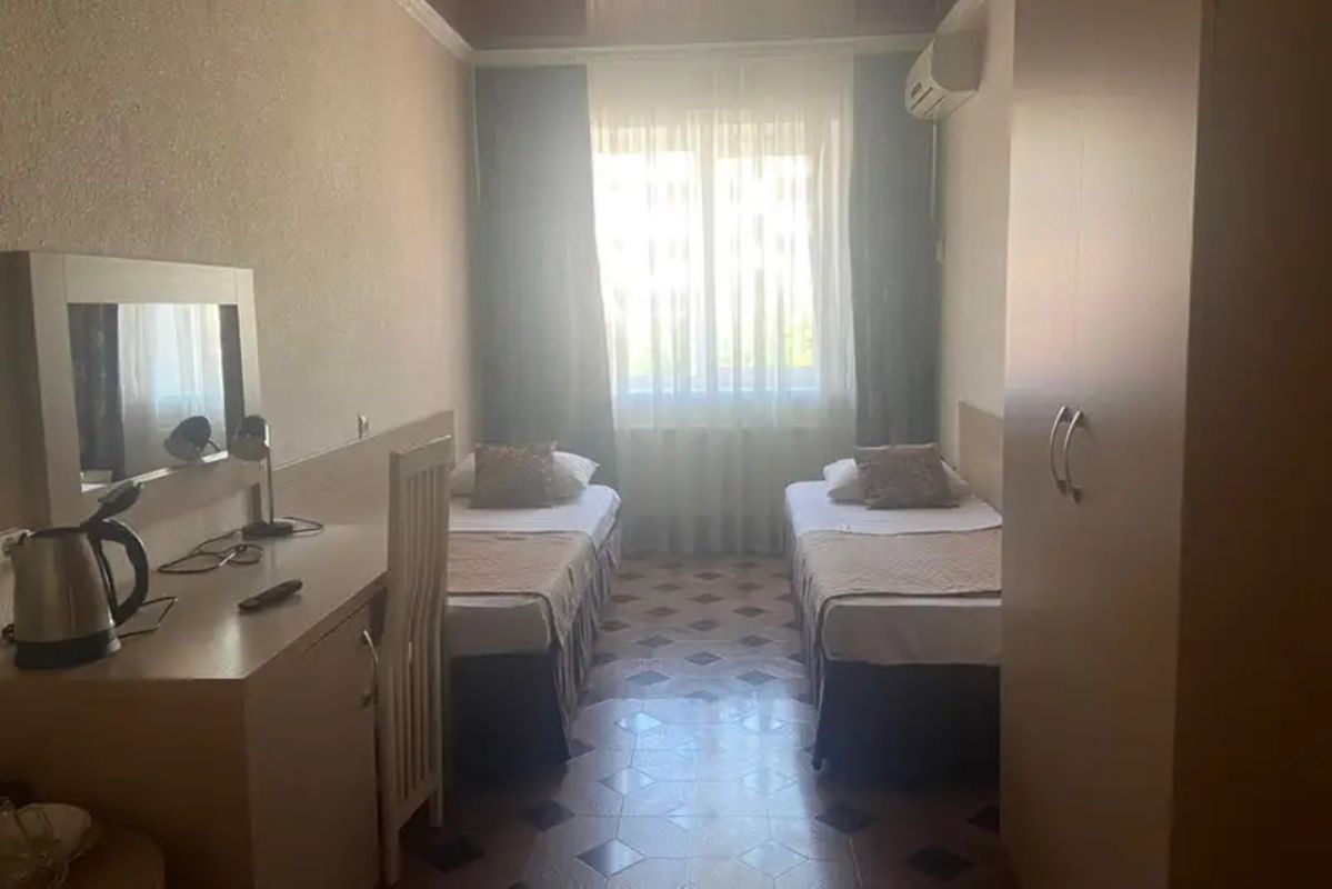 В номере две односпальные кровати+диван, вместимостью от 1 до 4 человек, холодильник, тв, сплит система, сушилка, чайник. Номер расположен на третьем этаже. с/у (душ и туалет рядом с номером) на два номера на этаже!!! Без балкона