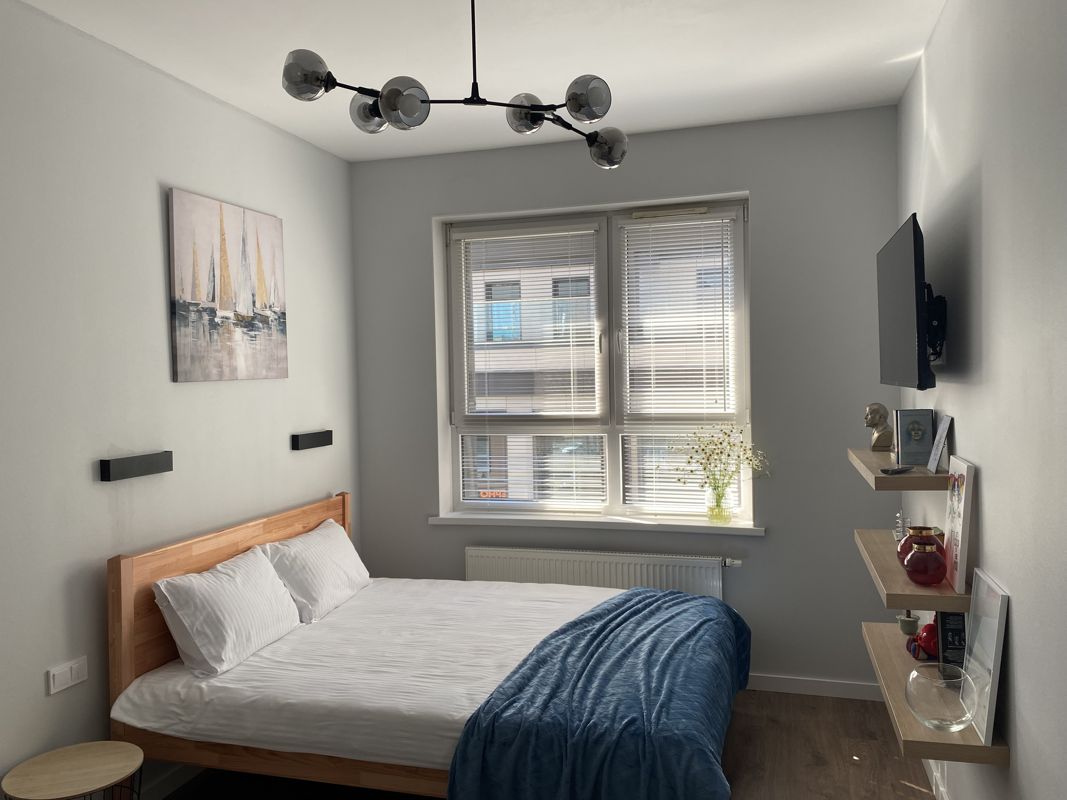 Квартира находится на 3 этаже жилого комплекса бизнес-класса, в шаговой доступности от м.Московская (15 минут) и в 20 минутах езды от центра города. Возможно размещение до 4 гостей единовременно, возможен заезд с детьми от 3 лет. Квартира укомплектована современной мебелью, в комнате установлена кровать шириной 160 см, диван, рабочее место, на кухне установлена кухонный гарнитур, диван, обеденная группа (стол (120*60) + 4 стула), для хранения вещей и одежды предусмотрена отдельная гардеробная для хранения. Также в квартире установлены 2 ТВ, кондиционер, холодильник, СВЧ-печь, посудомоечная машина, стиральная машина, бойлер. В доме расположены кафе японской и европейской кухни, 2 кофейни, салон красоты, магазин Вкусвилл. В шаговой доступности от ЖК "Питер" находятся магазины ОКей, Лента, во дворе дома находится ТРК "Континент", спортивный клуб Экстраспорт.