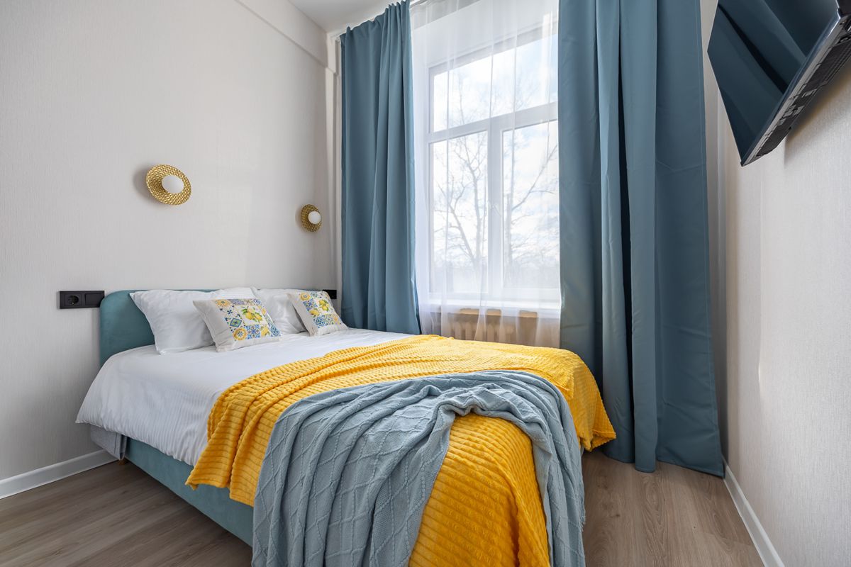 В апартаментах мы сможете отдохнуть и набраться сил на кровати с ортопедическим матрасом 140х200. Прекрасное сатиновое белое постельное белье позволит вам отлично выспаться.