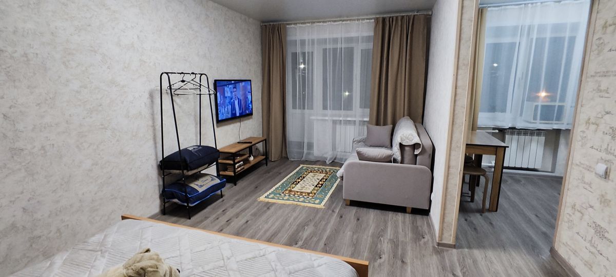 - полезная техника: холодильник, плита, микроволновая печь, электрочайник, фен, утюг, гладильная доска, ТV(80 цифровых ТВ каналов), Wi-Fi;