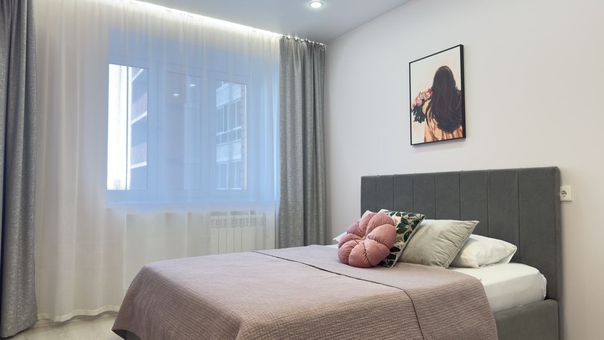- Затемняющие шторы в гостиной и спальне для крепкого сна даже в дневное время;