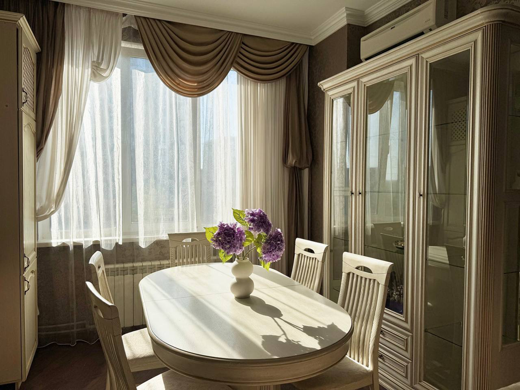 Кухня: полноценная зона с обеденным столом, вся необходимая техника и посуда