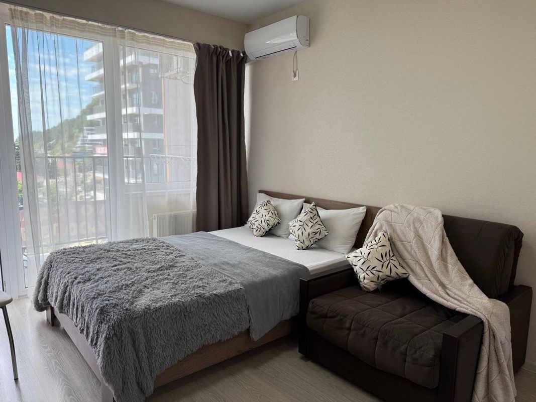 Квартира с панорамными окнами, наполняющим комнату светом, лазурное море у Вас на ладони, меняющаяся световая гамма в зависимости от времени суток становиться частью интерьера.
