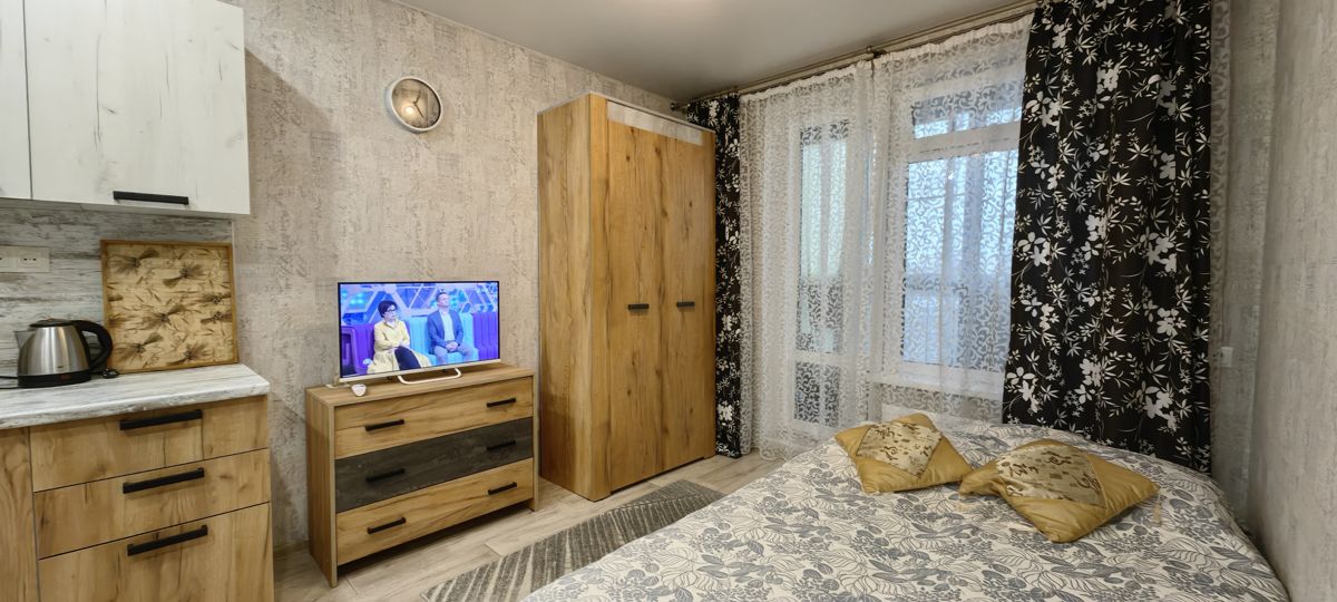 В квартире есть все необходимое для проживания: новая мебель, техника: холо- дильник, электрическая 2-конфорочная плита, микроволновка, электрочайник, Смарт-ТВ (400 каналов), стиральная машинка, утюг, фен.