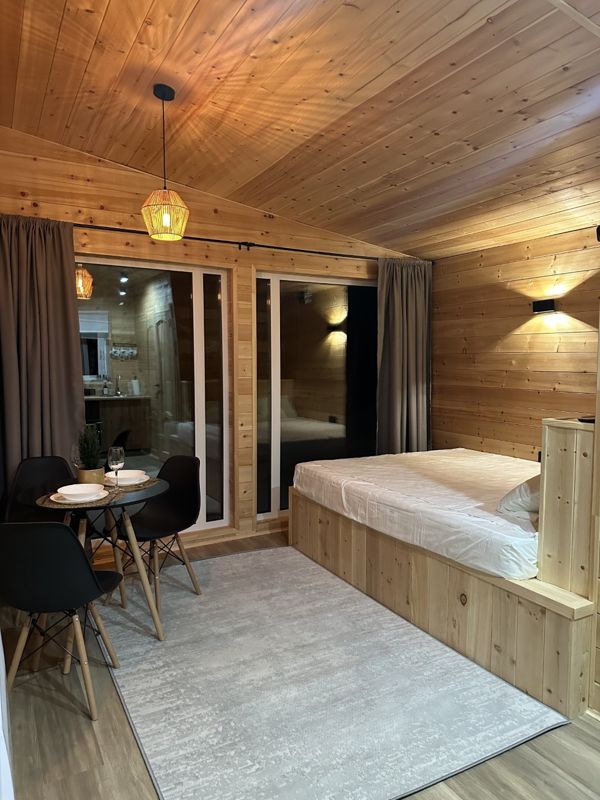 - Домик рассчитан на 2 человек (допустимо размещение ребенка до 7 лет без дополнительного спального места).