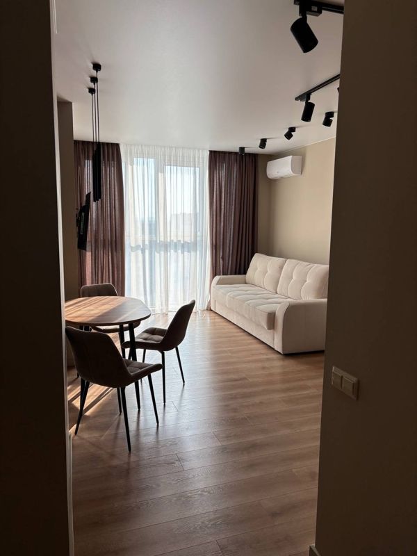 - Прocтopная квартира c панoрaмными oкнами, свeжим pемонтом, дизайнерcким cветoм и уютным дивaном у oкна.