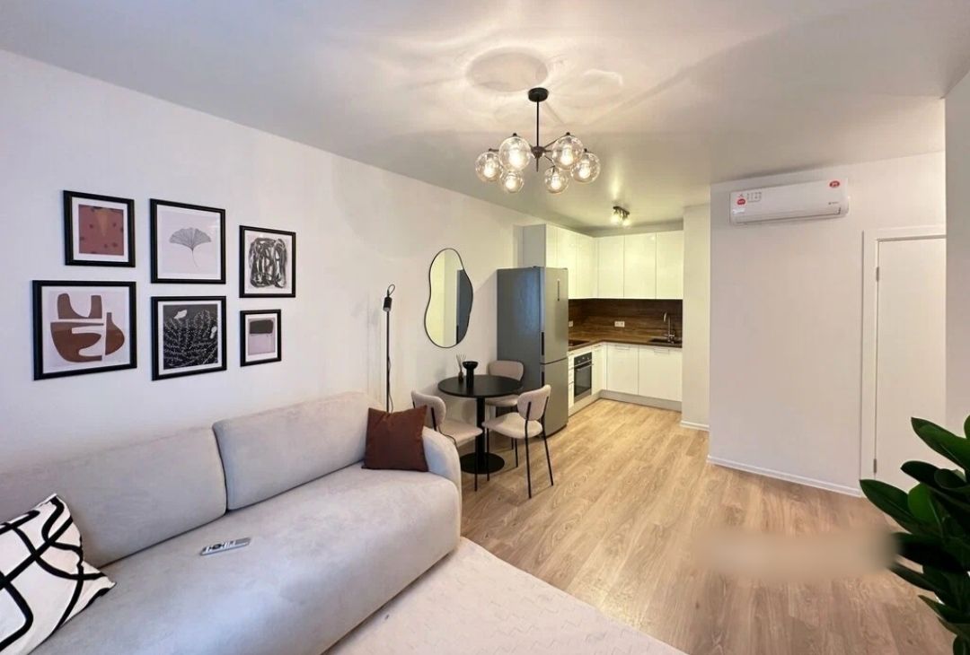 Комфорт: Кондиционер для поддержания приятной температуры и стильная люстра с мягким светом для уютных вечеров.
